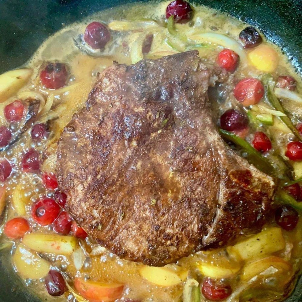 3. On medium / high heat, place the rubbed chop onto the dry skillet.
