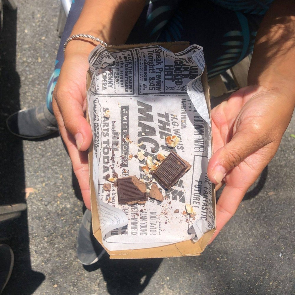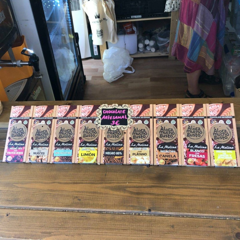 As soon as we finished the hike, hungry and exhausted in the middle of a hot summer day, we were waiting to catch the shuttle back to our car when we found a chocolate stand that was selling artisanal chocolate made in Spain. Of course, I saw this as the perfect opportunity to taste some Spanish chocolate and support a local company! The woman working there was very kind, and explained to us that many of her chocolates are sweetened with honey, rather than sugar. That is, locally farmed and organic honey!